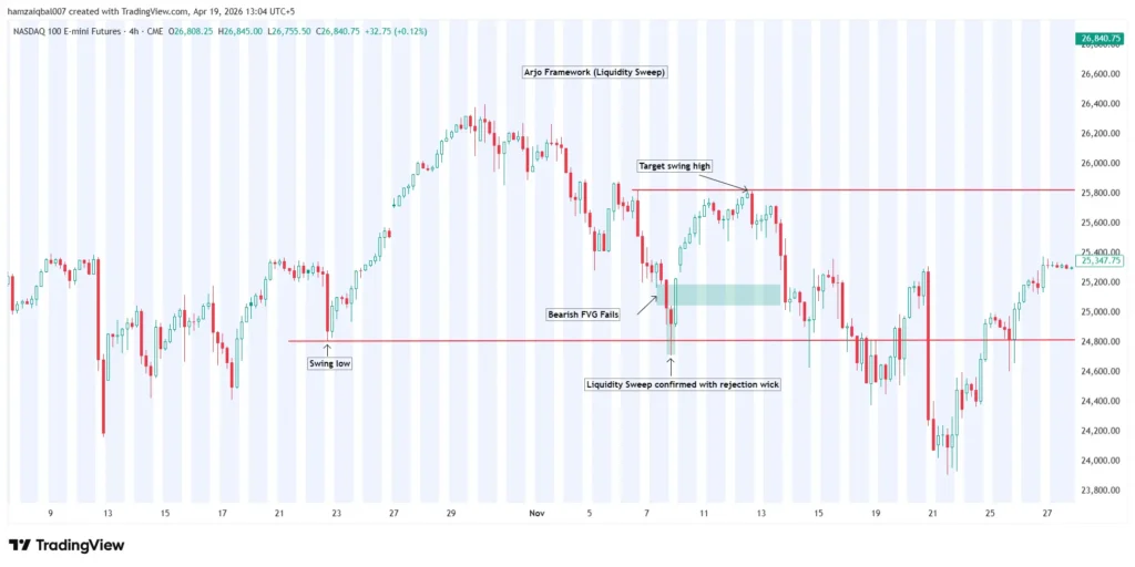 - A liquidity sweep leads to a trend reversal.