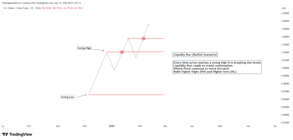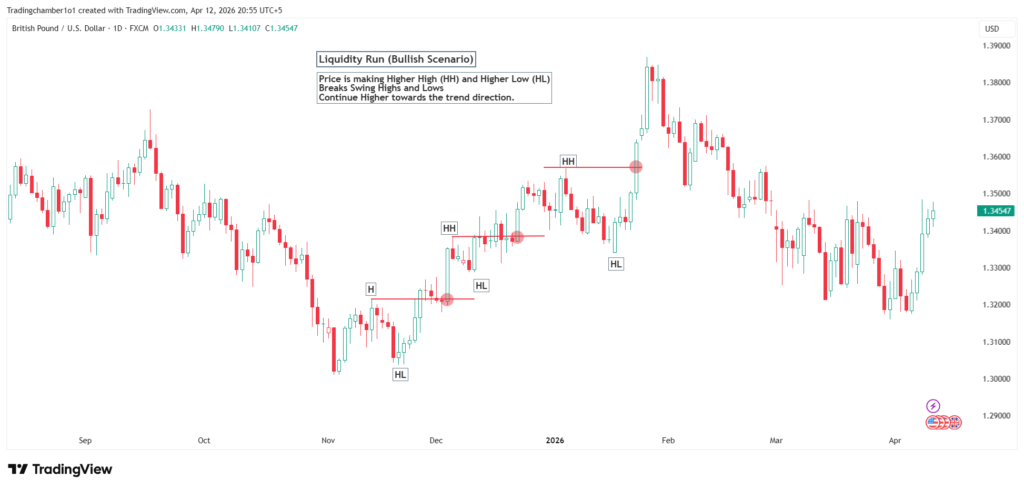 A Live example of a bullish liquidity run is explain below