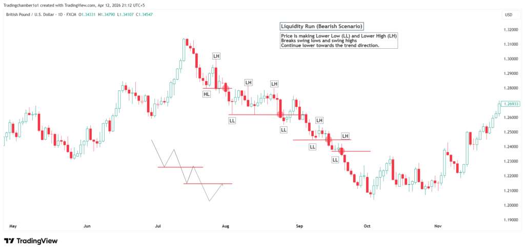 A Live example of bearish liquidity run is explain below
