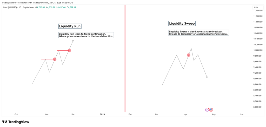 - Liquidity run leads to trend continuation.
